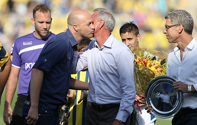 Cruyff with his son, Jordi, Maccabi Tel Aviv's sports director (Photo: Oren Aharoni)