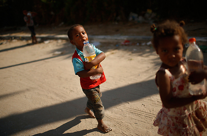 Children hold bottles of water after filling them from public taps in northern Gaza Strip (Photo: Reuters)