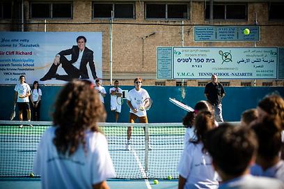 Veteran British pop star, philanthropist takes to tennis court with Israeli Arab youth at Nazareth Tennis School he helped establish