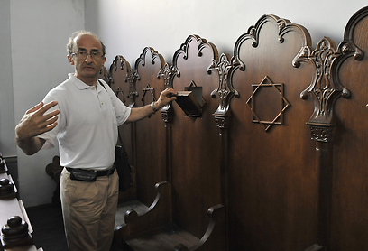 Pavol Salamon inside Jewish synagogue in Kocice, Slovakia (Photo: AFP)