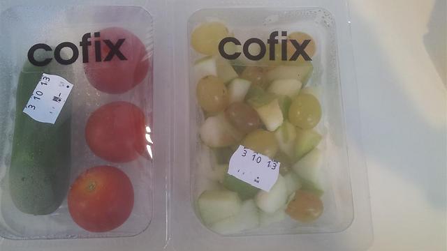 First branch of Cofix in Tel Aviv offers different types of coffee, sandwiches, soft drinks, pastries, sliced fruit and vegetables for fixed price of about $1.40. Owners plan to open 300 stores within three years