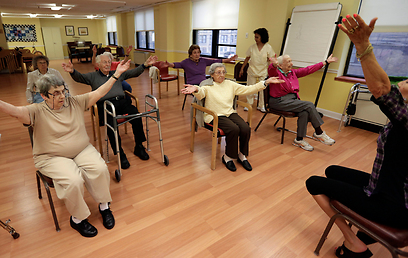 Margie Oppenheimer (L) participates in yoga class (Photo: AP)