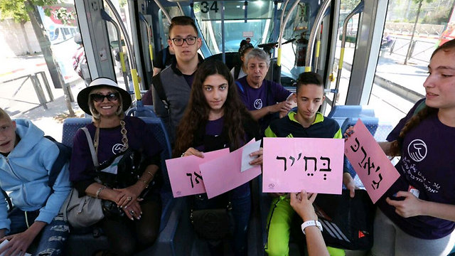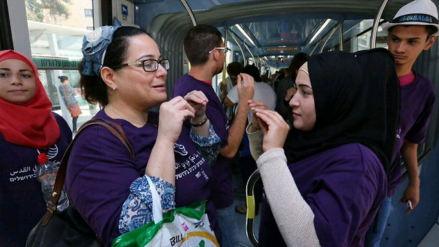 High schoolers riding Jerusalem's light rail speak only Arabic to focus attention on incidents in which people were attacked because of the language they spoke.