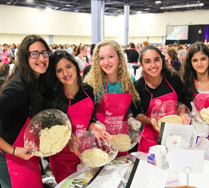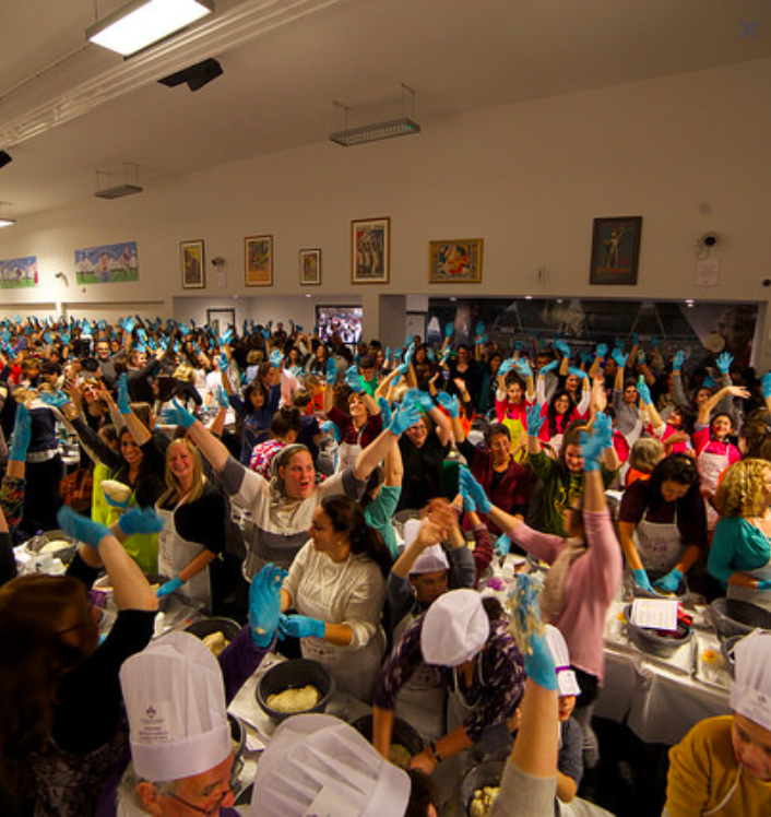 The hangar was filled to capacity and long lines of women, religious and secular, Israeli and international, crowded around long tables. The screens displayed challah events held being concurrently around the world with the participation of thousands of women at each event - 6000 in Johannesburg, South Africa.
