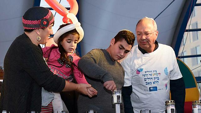 A crowd of 3,500 people arrived to witness 3-year-old Tahal Sofer and 13-year-old Naor Ben Ezra light the candles, both of whom just a few weeks ago were in the prayers of the entire country.