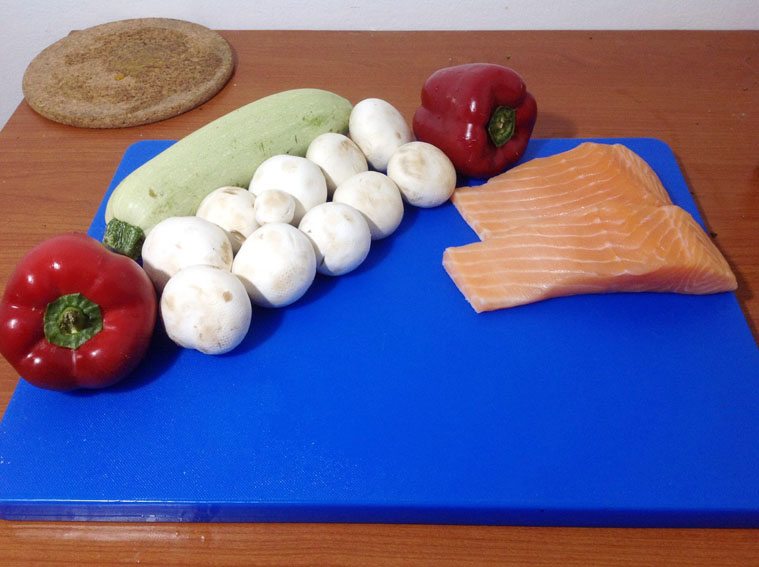 3. Открыть крышку пароварки и добавить к лососю нарезанные овощи. Готовить еще 15 минут.