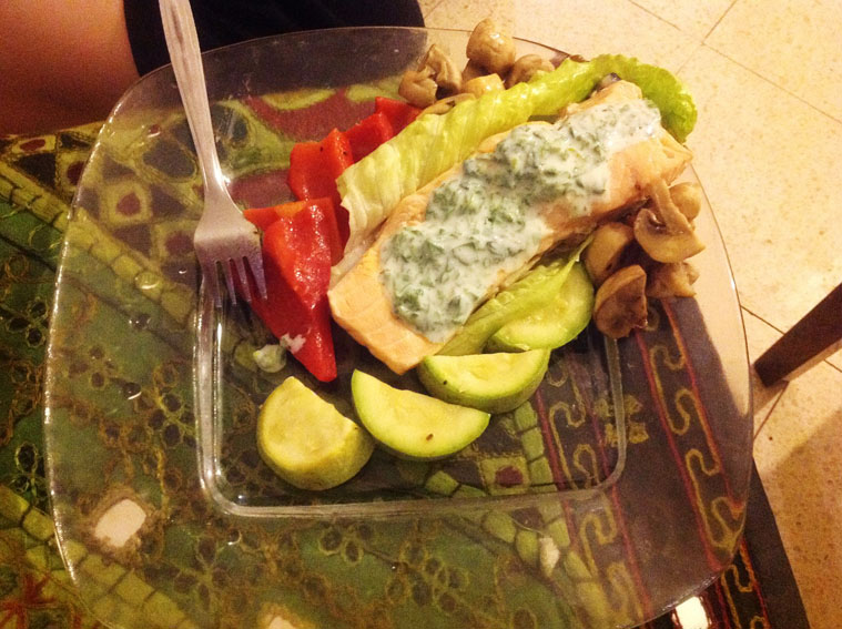 Нежный и диетический: лосось с овощами на пару под йогуртовым соусом