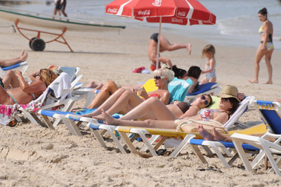 Beachgoers enjoy hot weather in Tel Aviv (Photo: Dalit Shaham)