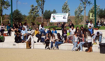 Students at Tel Hai demonstrate in support of contract workers (Photo: Maor Buchnik)