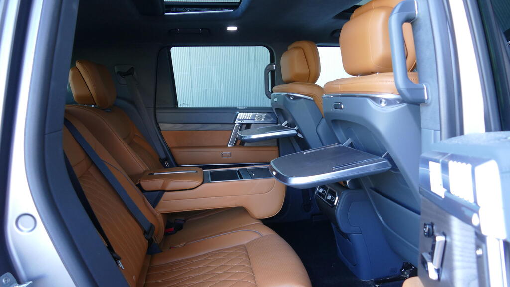 The dimensions resemble the Hummer SUV, measuring over five meters bumper-to-bumper. This provides generous rear space, complete with convenient features like a retractable tray on the backs of the front seats and an 8-inch touchscreen in the rear armrest to control comfort and entertainment settings. Equipment is extensive, with power adjustments, massage, heating and ventilation for the front and rear seats, surround cameras, two sunroofs and electrically deployable steps for easier entry into the high cabin.