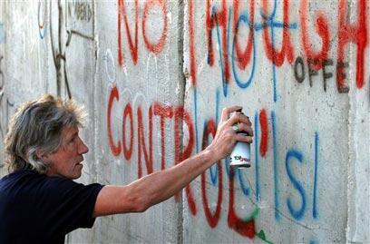 Pink Floyd front-man Roger Waters, who inspired the rock band's iconic album "The Wall," has scrawled "tear down the wall" on the concrete panels of Israel's security fence on Wednesday.