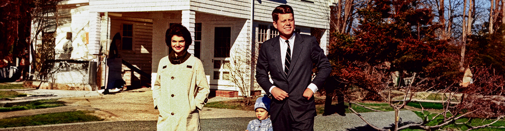 The first political family to live under constant cameras: John and Jackie Kennedy in their home yard