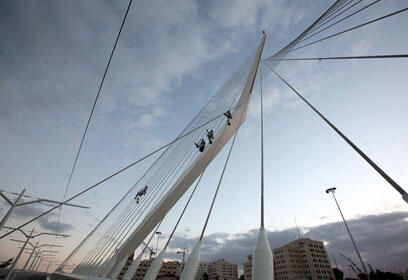 Greenpeace activists climb the bridge (Photo: Gil Yohanan)