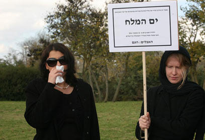 Members of Friends of the Earth Middle East, who embarked on the funeral march dressed in black, say the bill is the Dead Sea's last hope and that the government's failure to support it deals a critical blow to the lake.