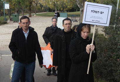 The "funeral procession" was held in protest of the Ministerial Committee on Legislative Affairs' decision on Sunday to reject the Dead Sea Protection and Rehabilitation Bill.