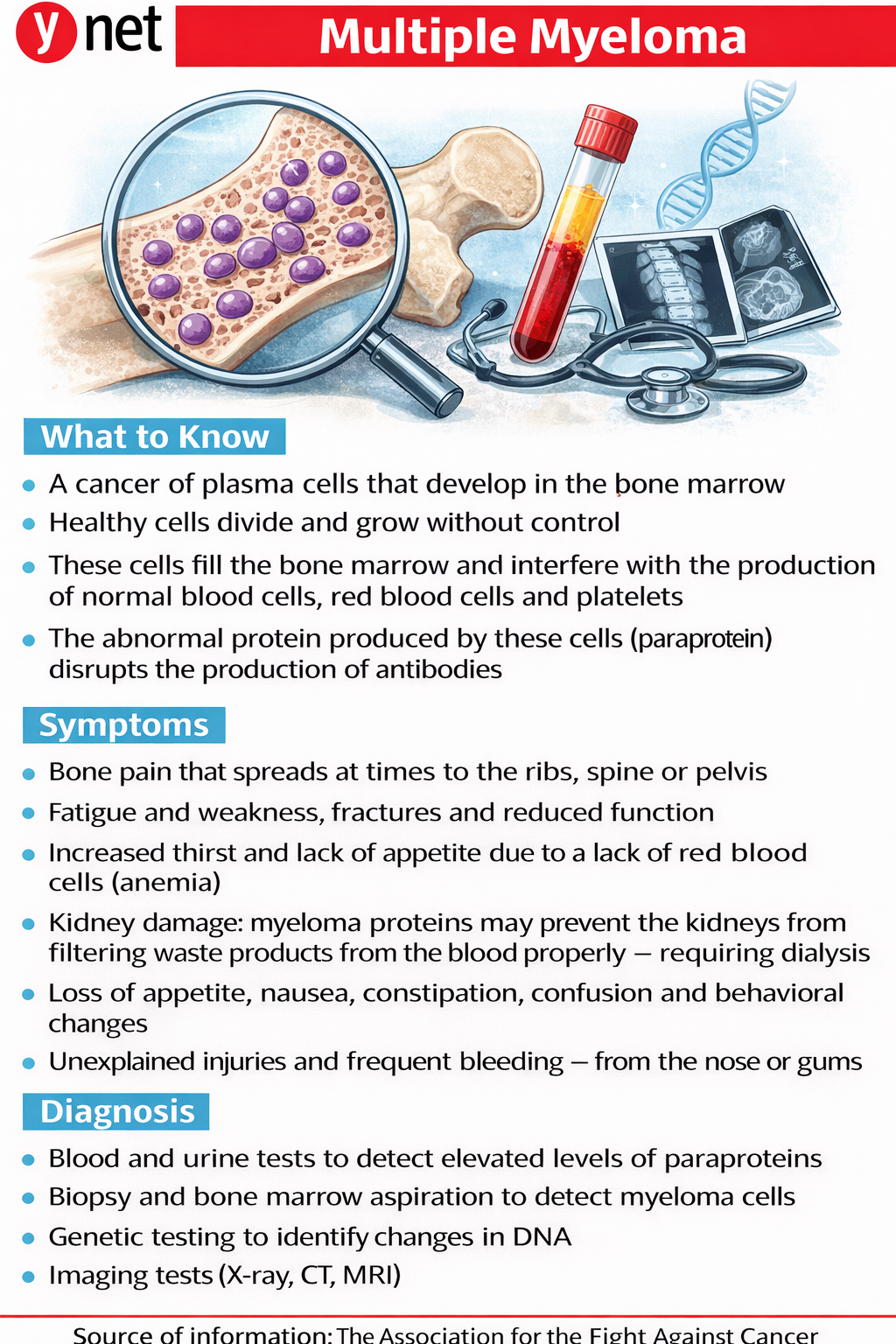 The goal of the study, led in Israel by Tel Aviv Sourasky Medical Center (Ichilov), is to identify healthy individuals in both the benign and smoldering stages. The hematology-oncology departments at Soroka Medical Center and Rabin Medical Center (Beilinson) have recently joined the research.