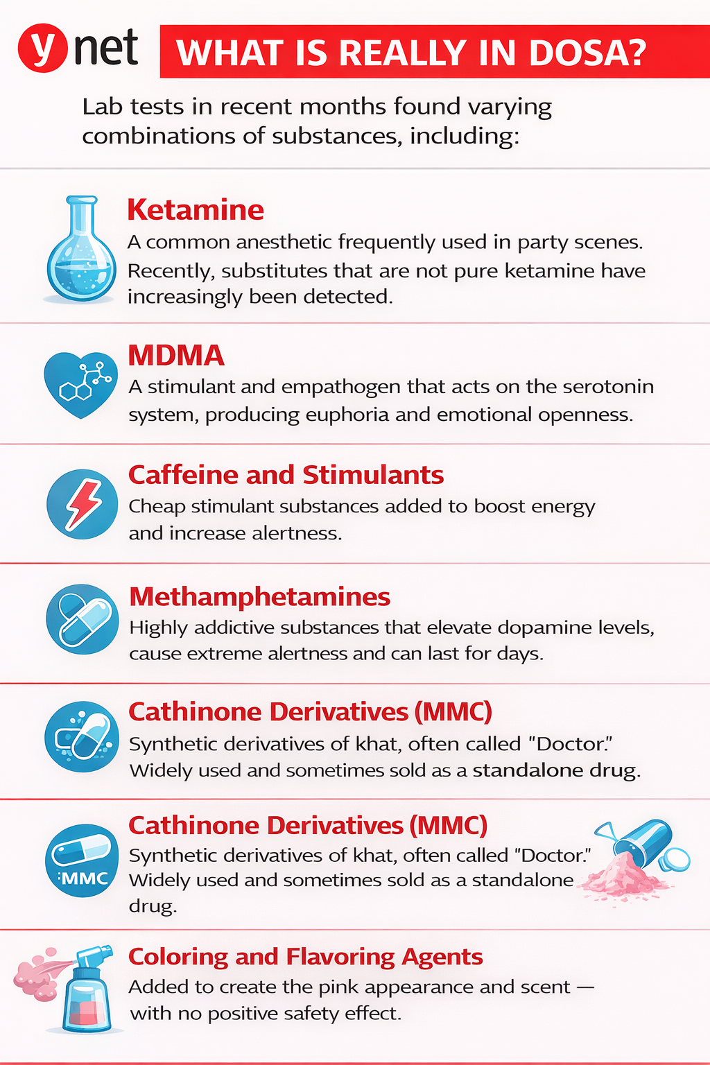 The drug known as “dosa” has been grabbing headlines over the past week following the high-profile arrest of singer Osher Cohen. But on the Israeli party scene of 2026, dosa is hardly new. It has long since become the “house drug” among broad segments of the population.