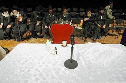 The response to Rabbi Cohen came about two weeks after the unity conference, when the messianists held their own conference at the Tel Aviv Culture Hall in honor of yud shevat, the date Rabbi Menachem Mendel Schneerson became Lubavitcher Rebbe. A red velvet chair was left empty on the stage for the Rebbe, and one of the chassidim poured wine into the cup on the table. To judge according to human eyesight, the chair remained empty until the end of the conference.