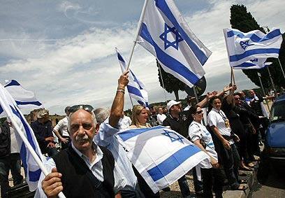 The demonstrators waved Israeli flags and cried "Israel ,Israel," in protest of the Iranian leader, who had announced that Israel would "vanish soon," and that the State had damaged the European Union.