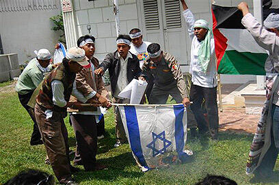 In Indonesia, the world's most populous Muslim state, Islamic hard-liners marched to the gates of the country's only synagogue, chanting, "Go to hell, Israel."