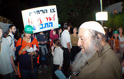Protest outside Naveh's home (Photo: Niv Calderon)