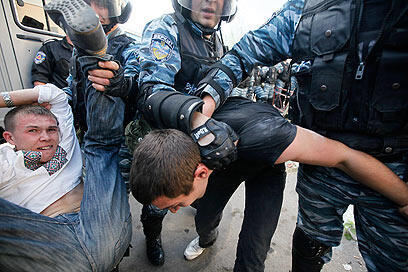 "The protesters used fragmentation grenades, slingshots and other assault equipment," Ukrainian Interior Ministry spokesman Victoria Kushnir was quoted as saying by the news agency UNIAN. The activists also wielded signs bearing anti-Semitic messages.