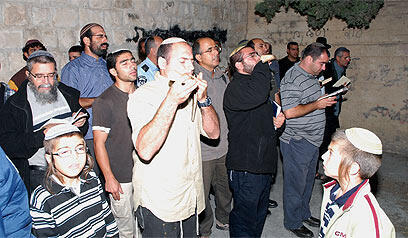 Praying at Joseph's Tomb, Wednesday night (Photo: Meir Brachia, courtesy of Shomron Regional Council)