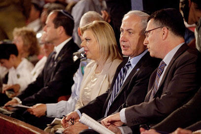 PM Netanyahu with wife, Sarah and Minister Sa'ar at the contest (Photo: Ohad Zwigenberg)