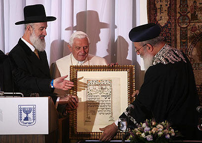 Israel's chief rabbis with Pope Benedict (Photo: Gil Yohanan)