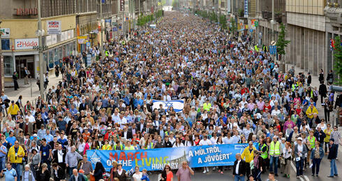 "Anti-Semitism has risen. You can feel that in all segments of society: in politics, in media, in schools and in social intercourse," said another marcher, Gyorgy Burjan, a retired engineer, adding that Jobbik had capitalized on that.