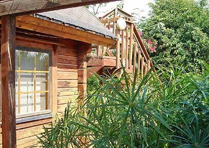 The other two zimmers on the premises are for couples. One is a wooden cabin which includes a green patio, a kitchenette with a refrigerator and a coffee corner, cable TV, a stereo system and a bathroom with a big bathtub.