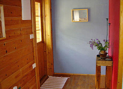 We drove a few miles into the community, and then, out of the darkness, we discovered a large wooden house surrounded by trees and flowers. We parked in front of the house and were led to the family zimmer, one of the three cabins the guesthouse has to offer.