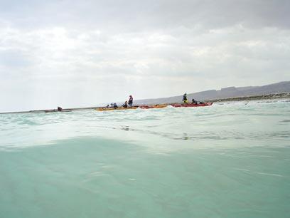 Early morning in the Ein Gedi baths, the crew studies the sky and checks the wind direction – two factors that can easily change the life of a canoeist. The sky is clear enough, but the wind is south-easterly, which means that it won’t be easy. The aim: rowing to the battery near Masada, a spot that earned the name “parpar (butterfly)-8” station and back to the starting point.