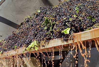 Pressing grapes in Binyamina winery (Photo: Effie Shrir)