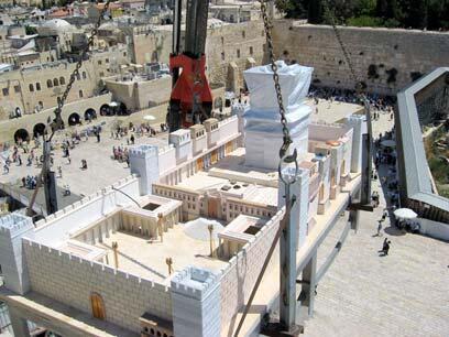 The Aish HaTorah Yeshiva, which is based in the Jewish Quarter of the Old City of Jerusalem, presented Wednesday a model of the Second Temple and placed it on the yeshiva's rooftop, overlooking the Temple Mount and the Western Wall.