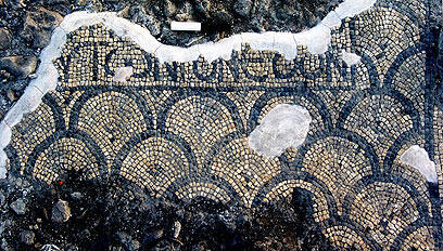 The floor of the hall was a colorful mosaic, decorated with a geometric pattern. In the center of the mosaic is a Greek inscription, of which a section of its last line was revealed: T()OUTON NEWN – meaning “this is the temple”.