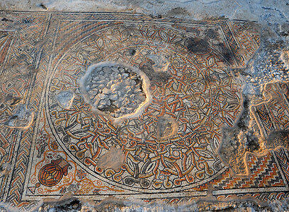 The main building at the site was a large hall 12 meters (39 feet) long by 8.5 meters (28 feet) wide and its ceiling was apparently covered with roof tiles. The hall’s impressive opening and the breathtaking mosaic that adorns its floor suggest that the structure was a public building.
