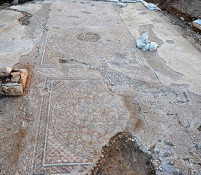 VIDEO - A spectacular colorful mosaic dating back to the Byzantine period (fourth-sixth centuries CE) was exposed in recent weeks in the fields of Kibbutz Bet Kama, in the Bnei Shimon Regional Council in the northern Negev desert.